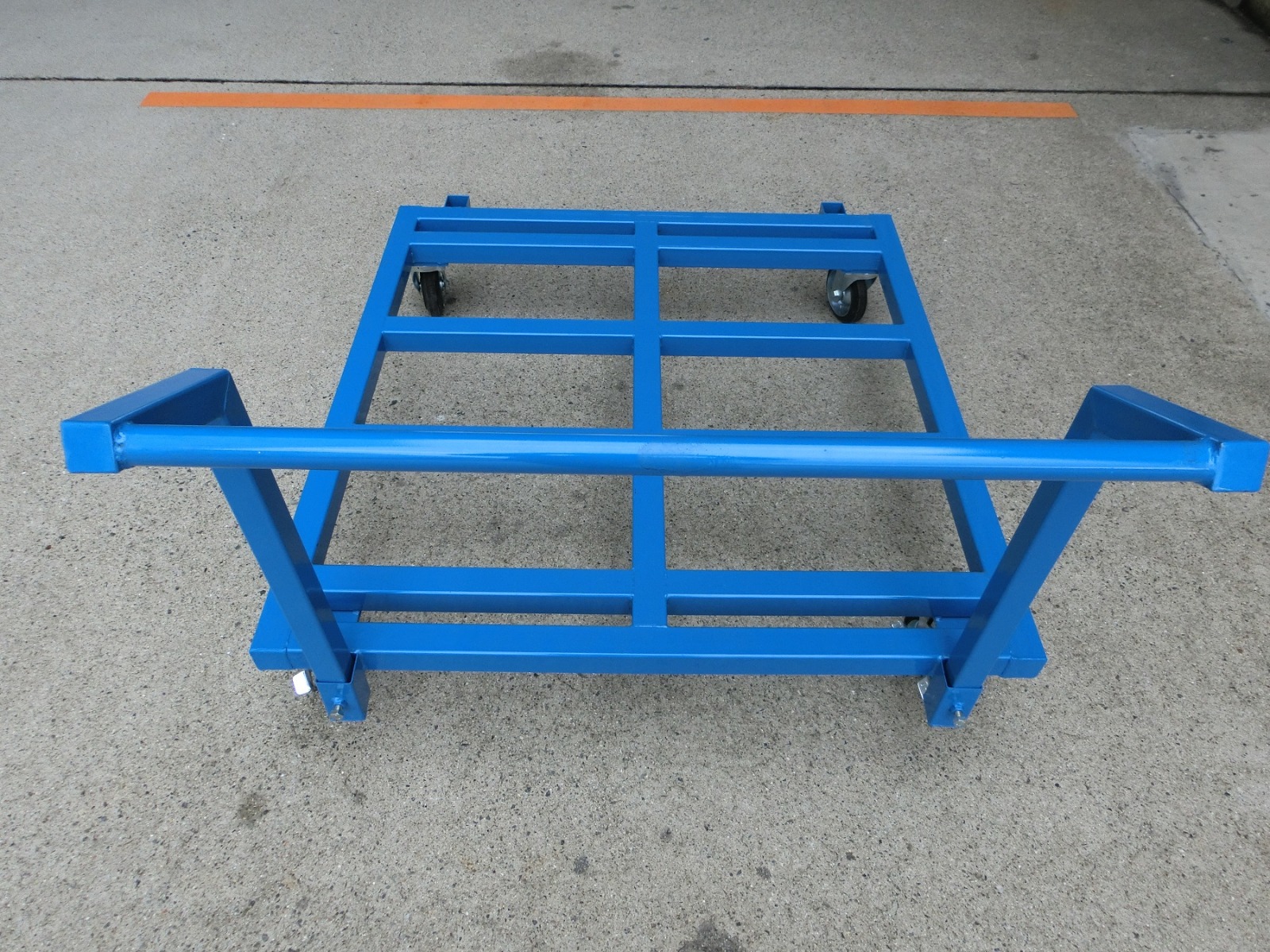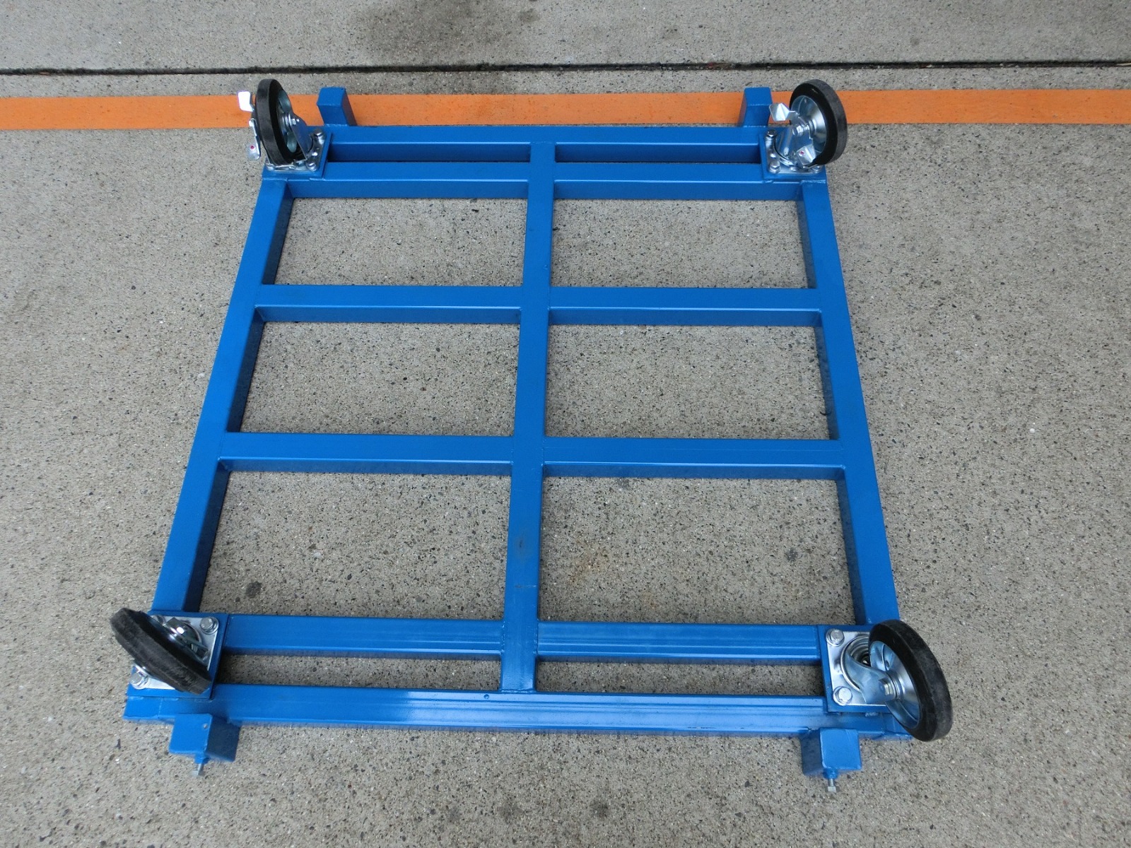 サイズ、用途を確認し、鉄工所と商談し、特殊フリーサイズの台車を考案してもらい納品する。