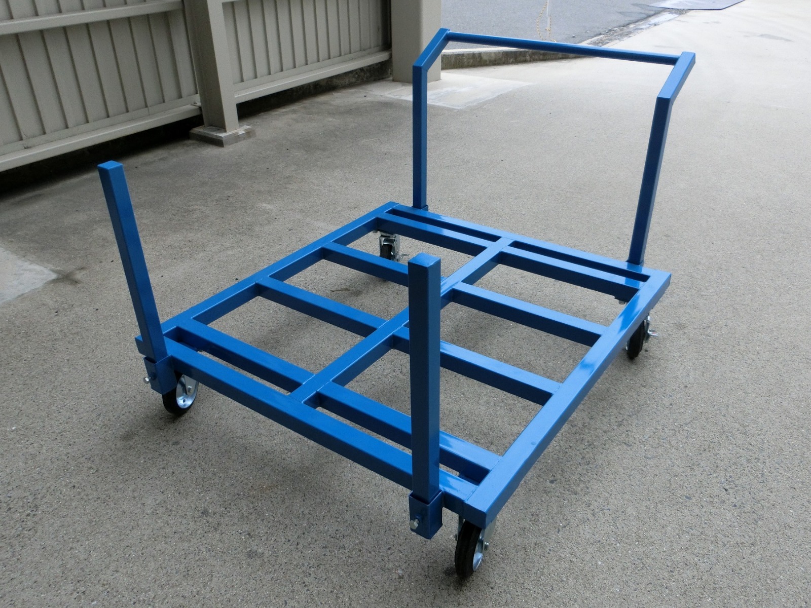 パレットのサイズに合わせた重量用の手押し台車をオリジナルで製作してほしい。また、取っ手が必要に合わせて脱着したい。