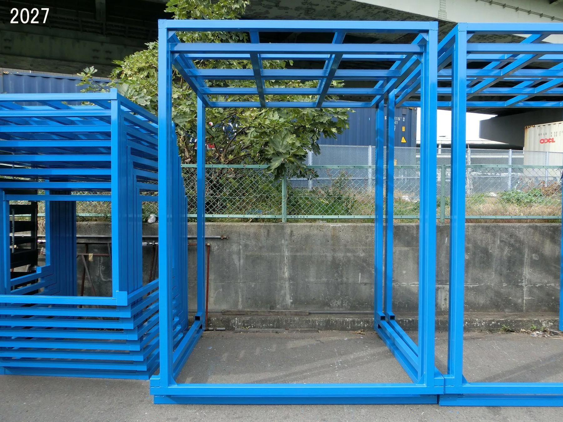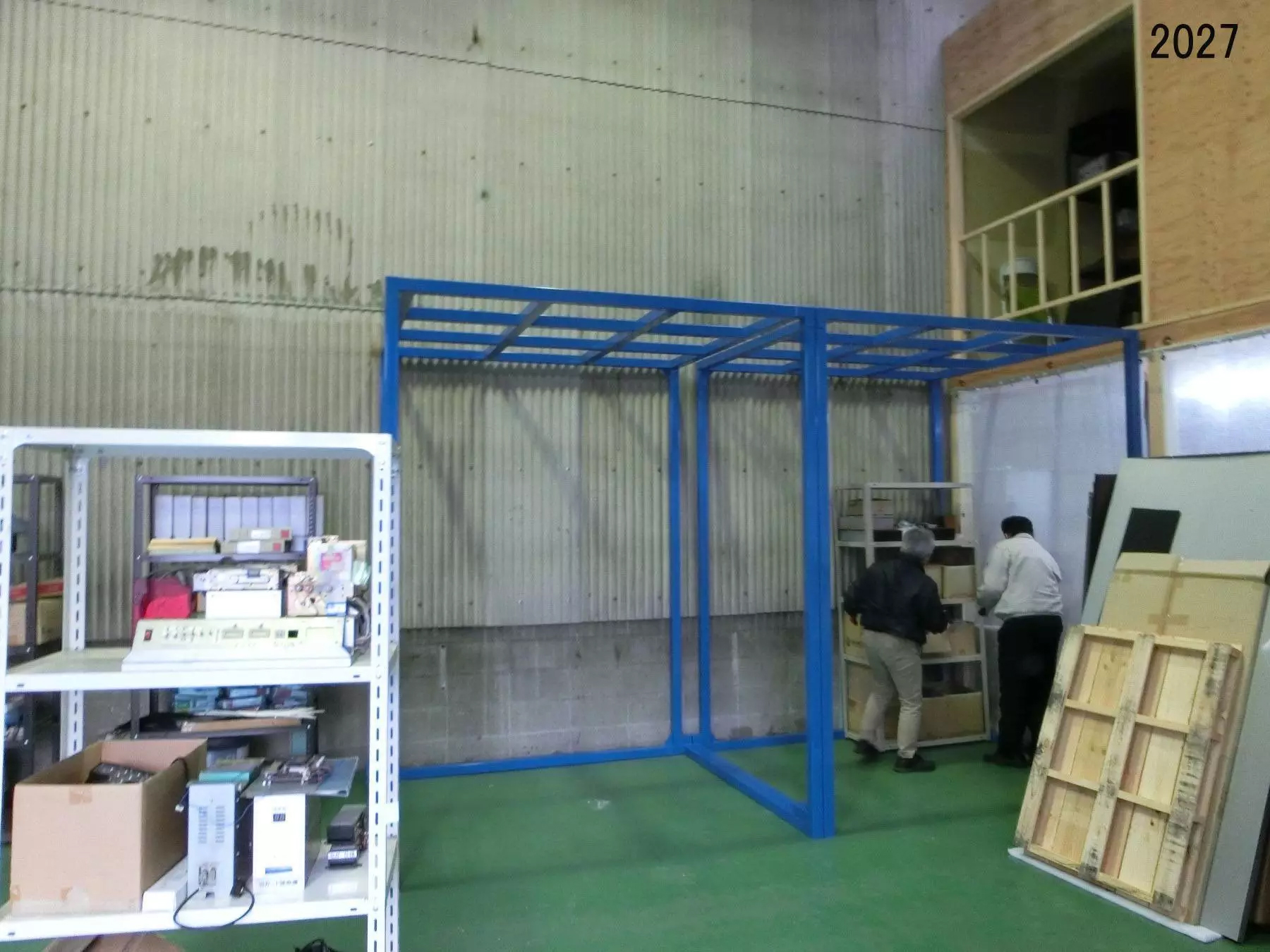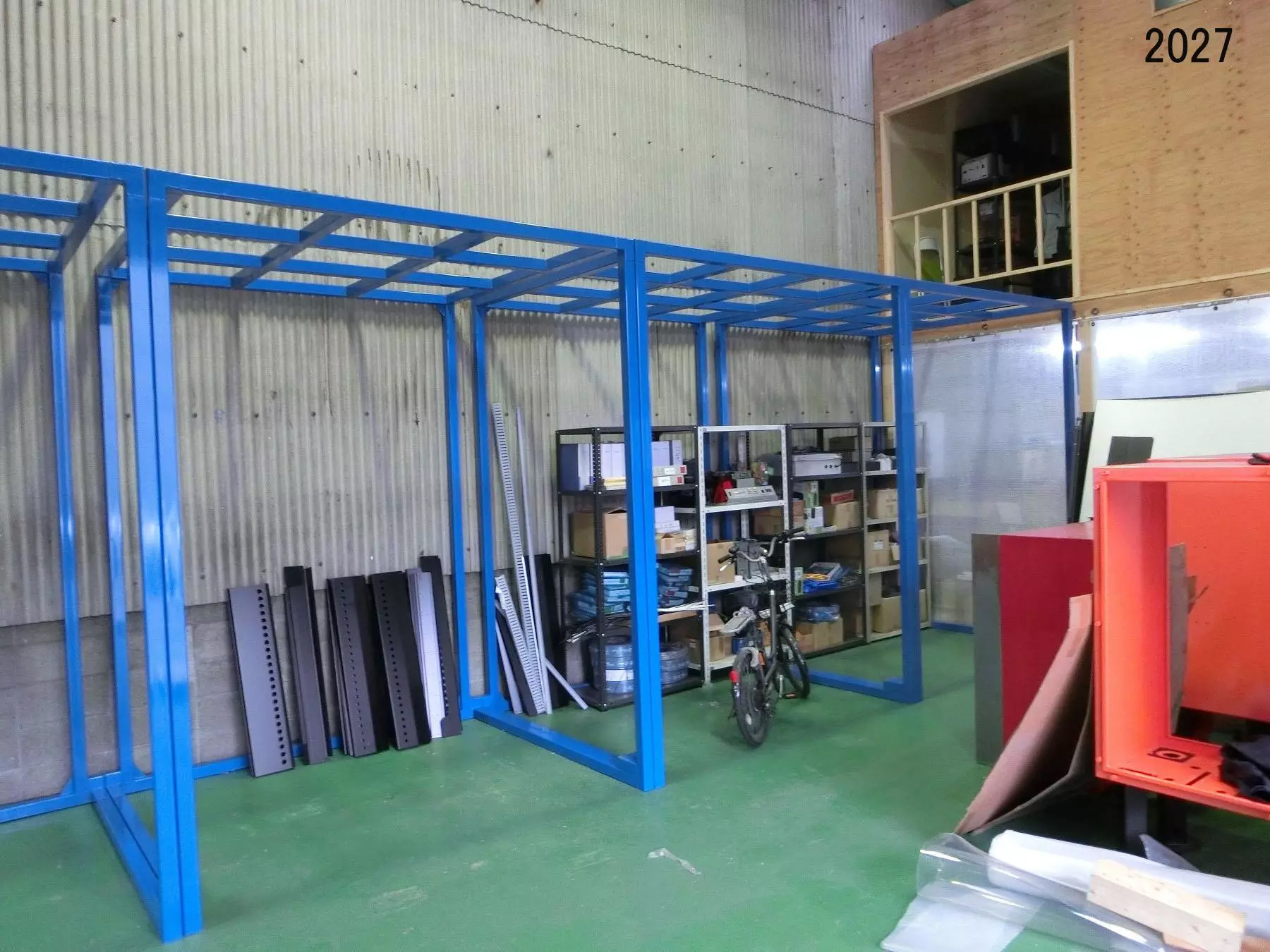 部材等で工場内が手狭になり作業がしづらかったが、立体的に保管する事で作業場が広くなった。