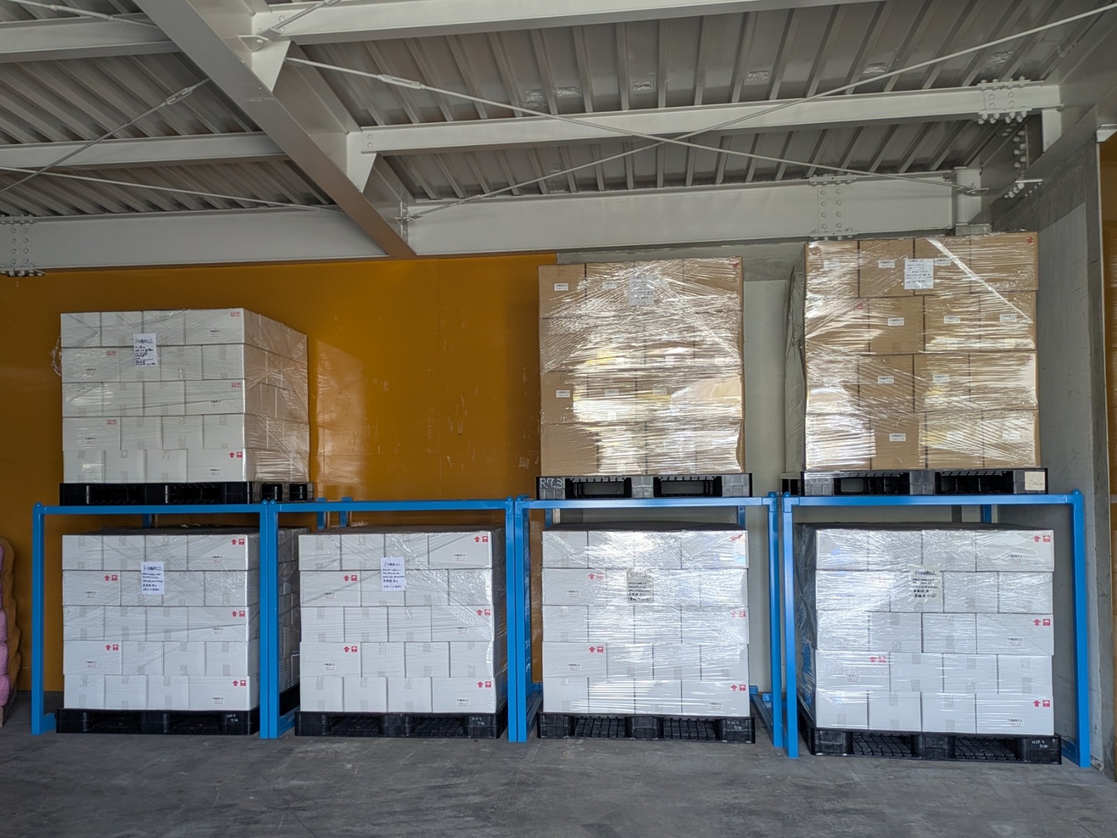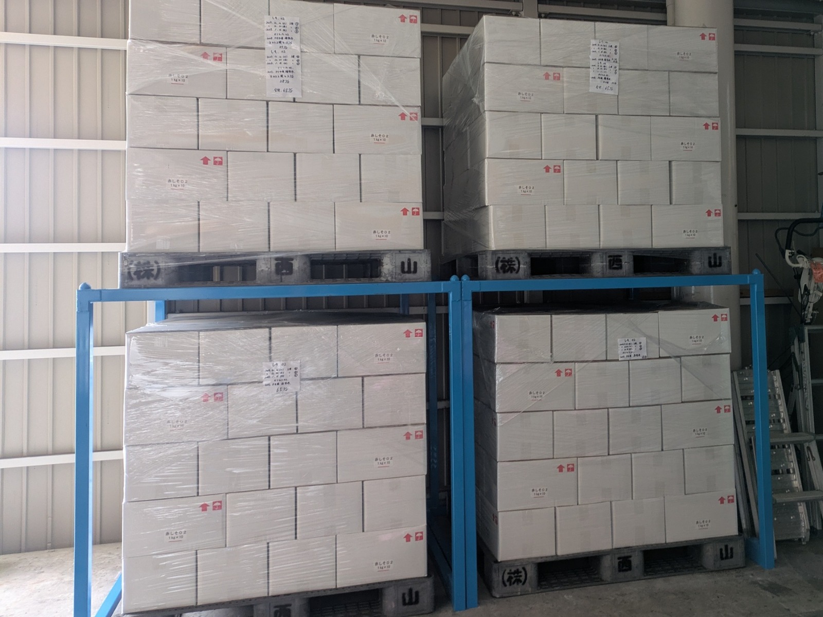 使用するパレットサイズに合わせて作っていただき、2段乗せも出来て倉庫を有効に使えています。