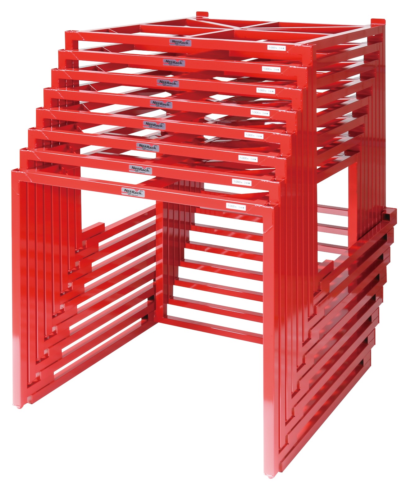 新品逆ネスティングラック(赤色)下ピンタイプになります。*特に50基以上ご検討中の方にお値打ち価格で販売しております。 この機会に是非ご検討下さい。*標準タイプ(1100×1100パレット使用分)の人気シリーズ、高さ3パターンです。 価格も掲載しています。詳細ご確認下さい。