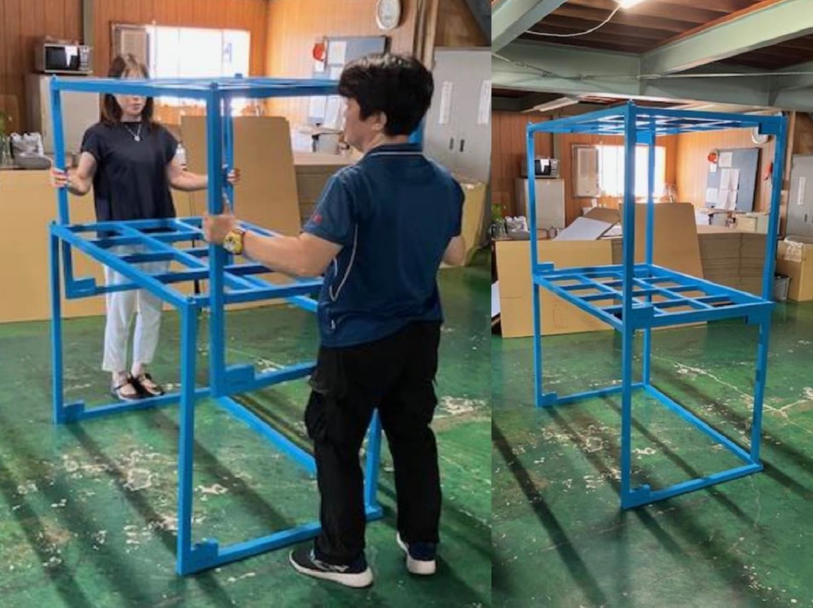 ・通常のネスティングラックより、細いパイプ等を使用し軽量化を実現