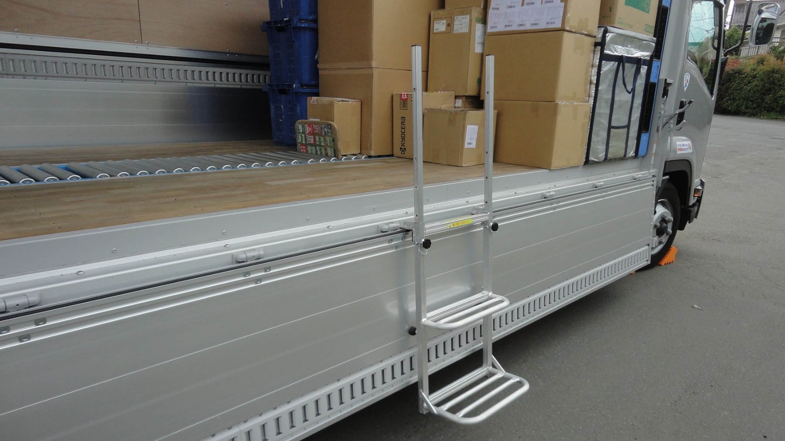 軽量アルミ製の為、設置・取り外し・持ち運び等に負担が少なく 車輛接合部には、ウレタン・ゴムにて保護 乗務員さんにも、トラックにも優しい設計となっております 。