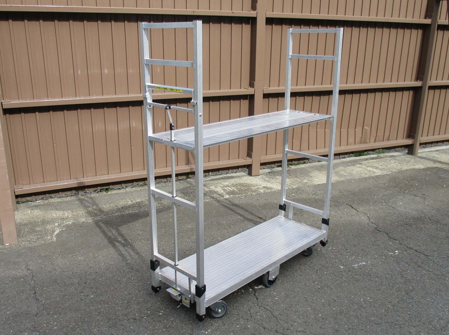 - 【新品】アルミ製六輪台車 中間棚付き W1210×L400×H1500