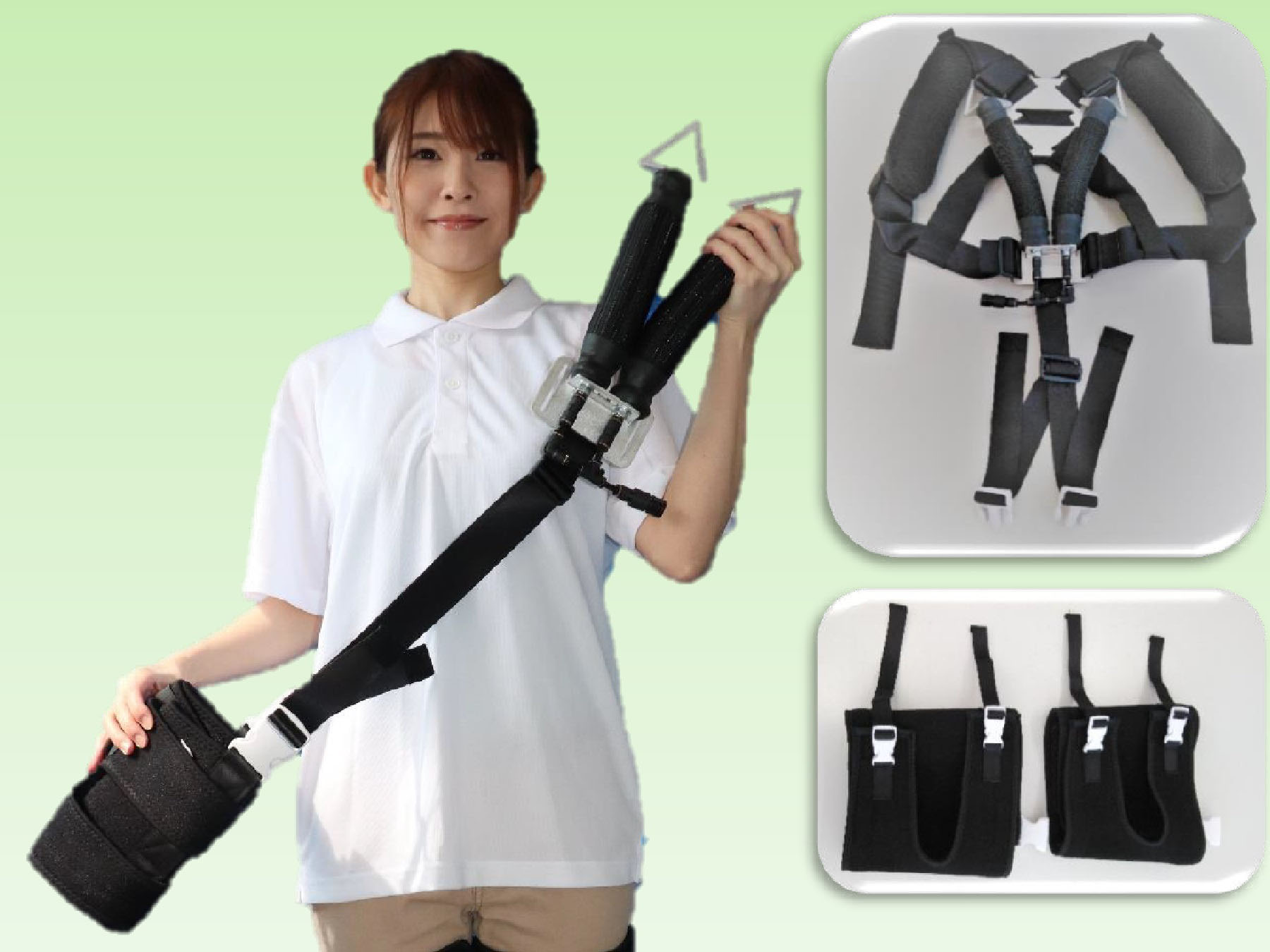 電気不使用、空気圧を利用した安全設計、力強い補助力で腰の負担を軽減するアシストスーツです