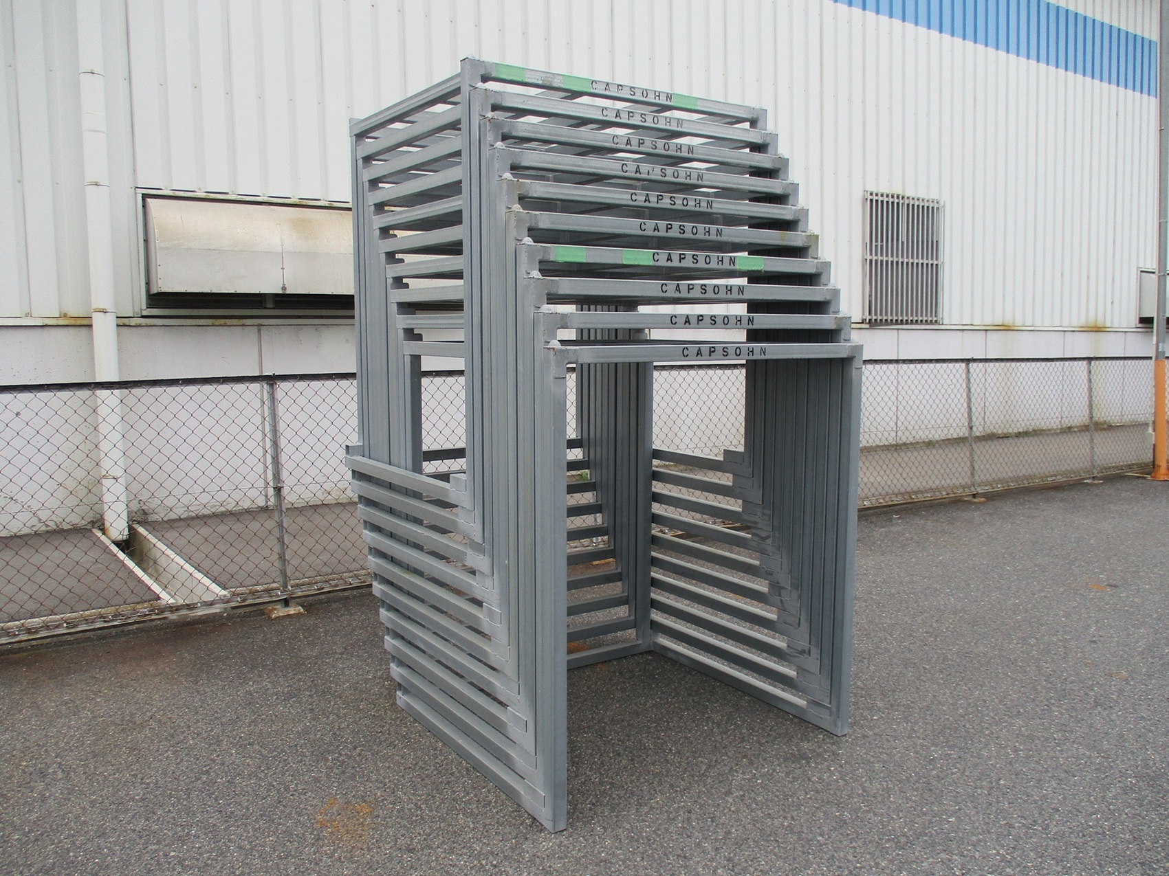 【レンタル】逆ネステナー外寸:W1,300×D1,200×H1,450mm内寸:W1,200×D1,150×H1,400mm保管場所:大阪府泉大津市1,100×1,100パレット用逆ネスティングラック横幅外寸1,300mmの省スペースタイプです在庫限り:24基1基1日レンタル@15円(税別・運賃別)お引取も可能です