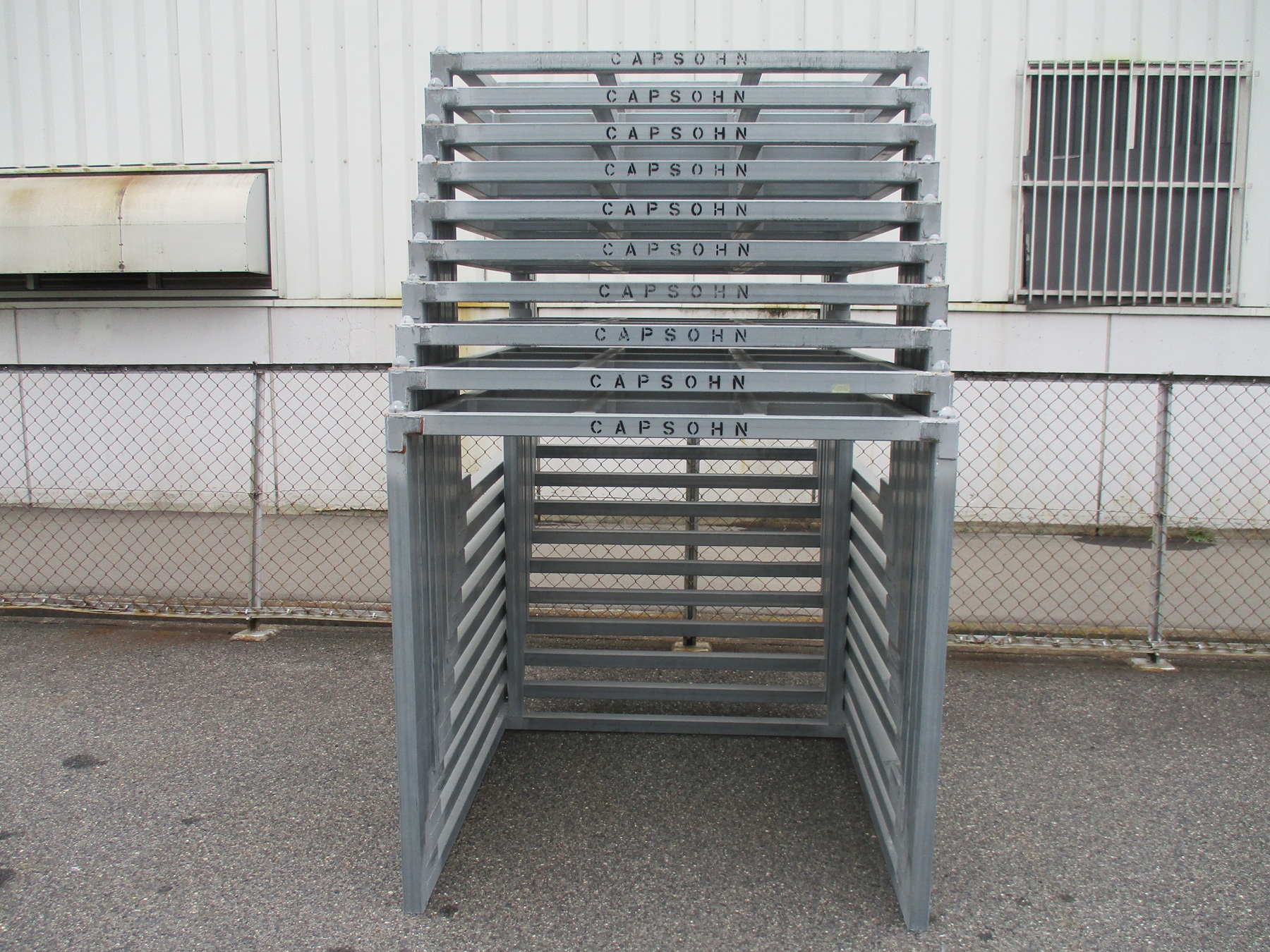 【レンタル】逆ネステナー外寸:W1,300×D1,200×H1,250mm内寸:W1,200×D1,150×H1,200mm保管場所:大阪府下1,100×1,100パレット用逆ネスティングラック横幅外寸1,300mmの省スペースタイプです在庫限り:158基1基1日レンタル@10円(税別・運賃別)保管場所が無人の為、お引取の場合は要相談
