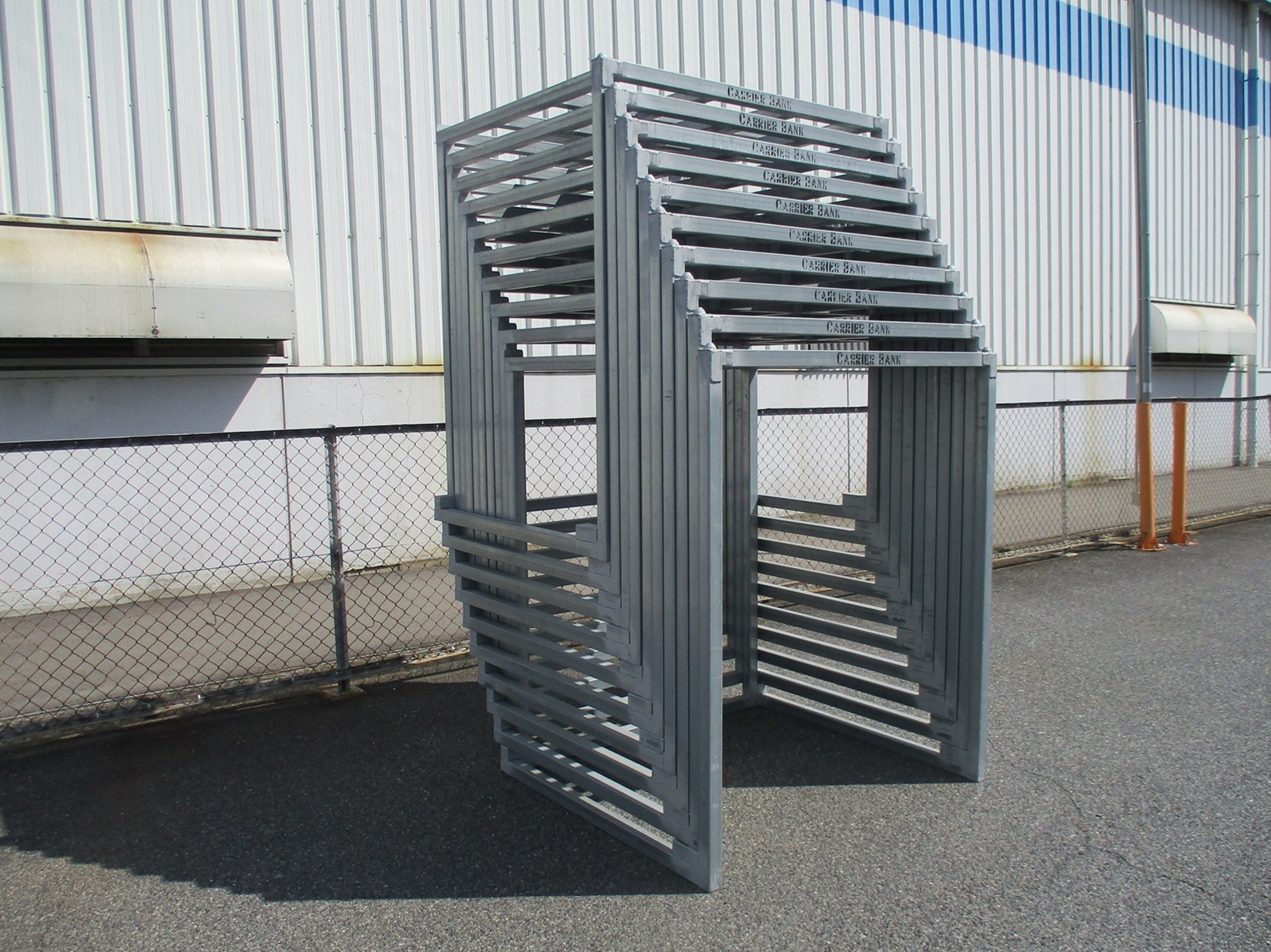 【レンタル】逆ネステナー外寸:W1,350×D1,200×H1,550mm内寸:W1,250×D1,150×H1,500mm保管場所:大阪府泉大津市1,100×1,100パレット用逆ネスティングラック在庫限り:14基1基1日レンタル@13円(税別・運賃別)お引取も可能です