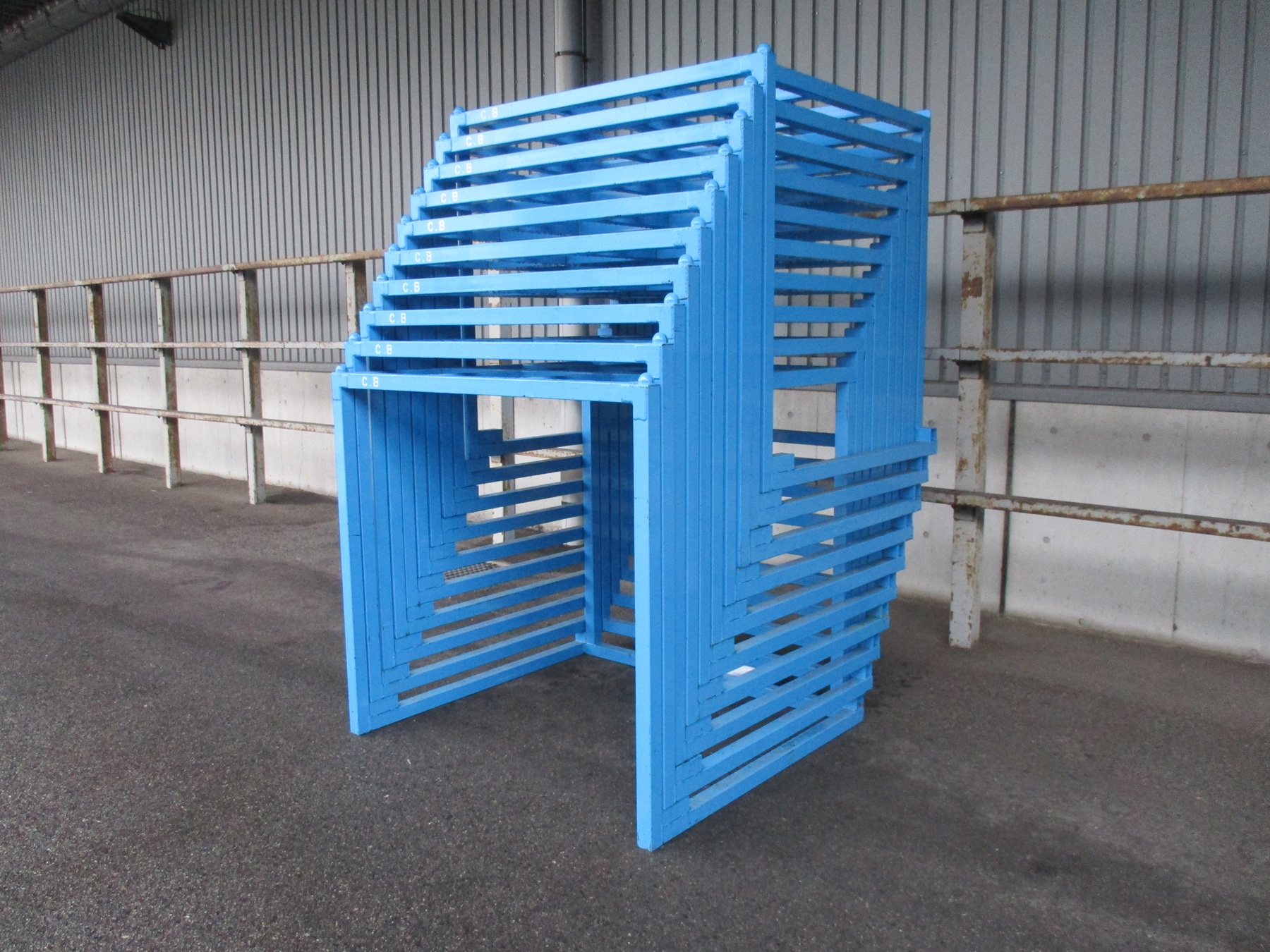 【中古】逆ネステナー外寸:W1,350×D1,200×H1,250mm内寸:W1,250×D1,150×H1,200mm保管場所:大阪府貝塚市1,100×1,100パレット用、パレット含め高さ1,100mmくらいの荷物保管に適しています販売価格:@9,800円(税別・運賃別)在庫数:10基お引取も可能です。