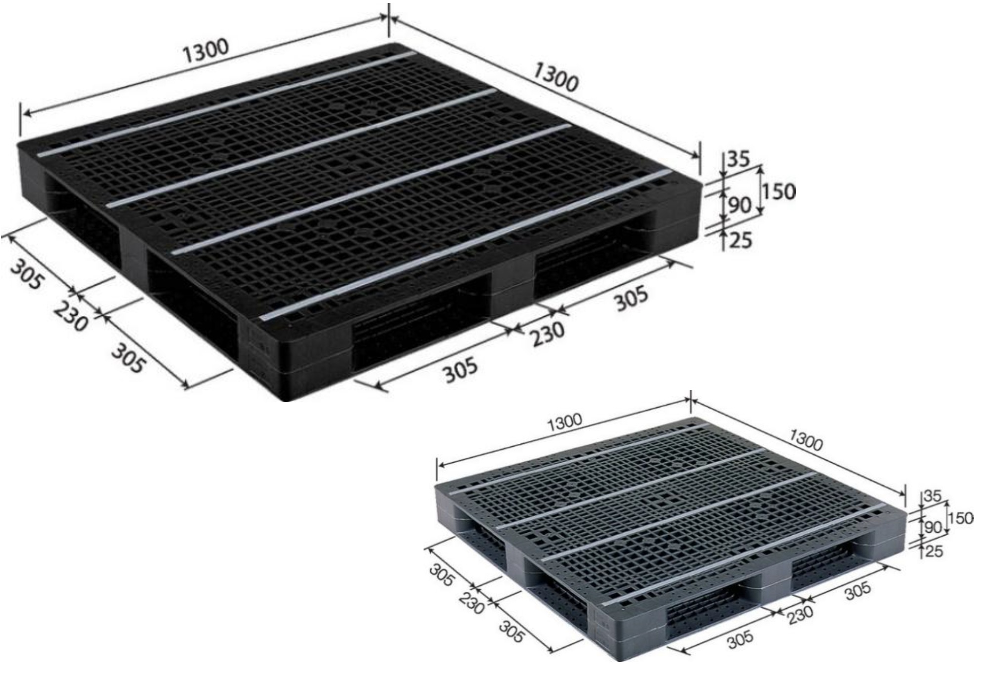 【新品】プラスチックパレットサンコー(三甲)社製外寸:1,300×1,300×150Hmm片面四方差し(特型ハンドリフト対応)質量:25.5kg 材質 グレー:PP ブラック:リサイクルPP動荷重:1,000㎏ 静荷重:4,000㎏大型の荷物や、樽などの保管に対応。枚数・納品場所をお伝えください、価格お見積りいたします