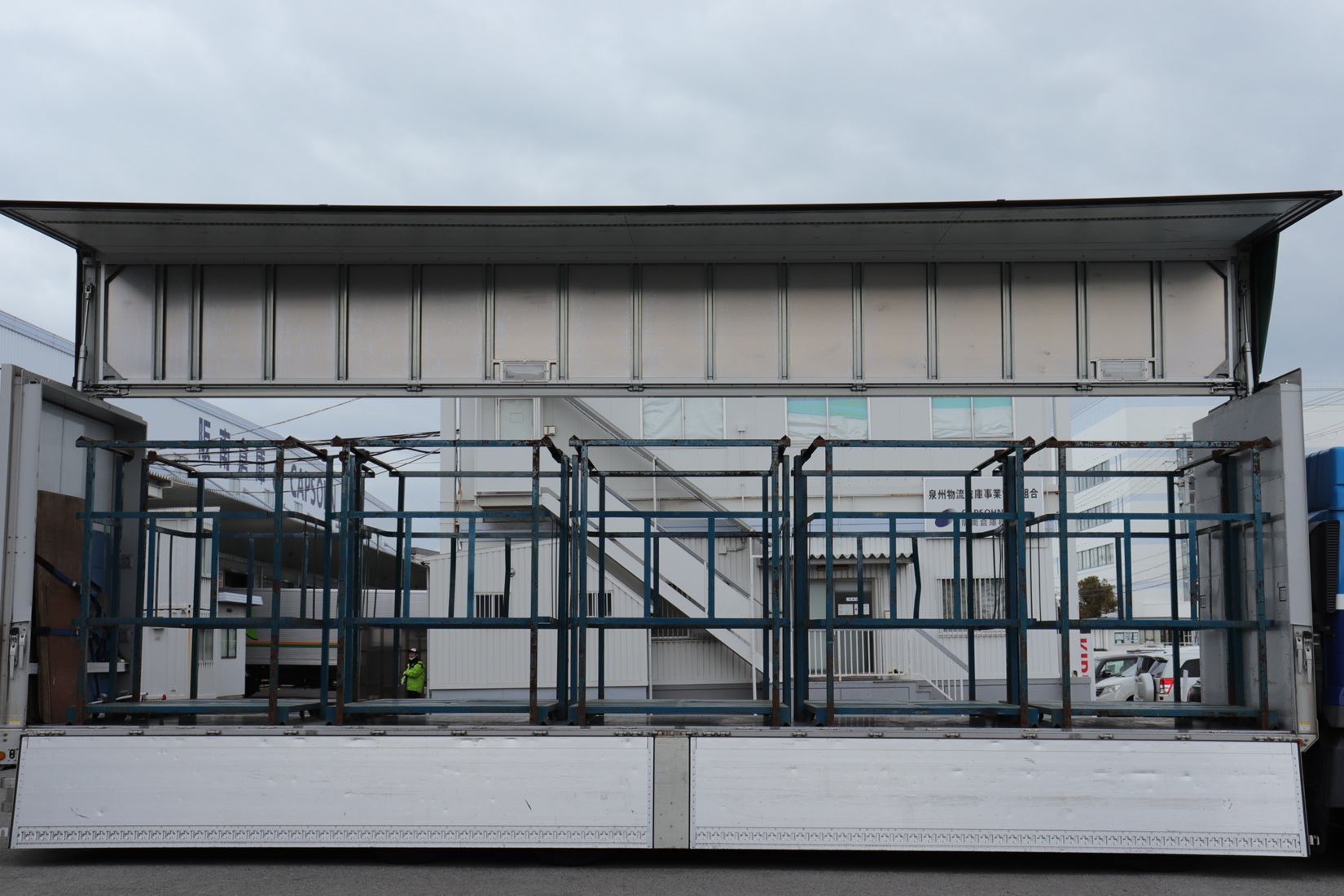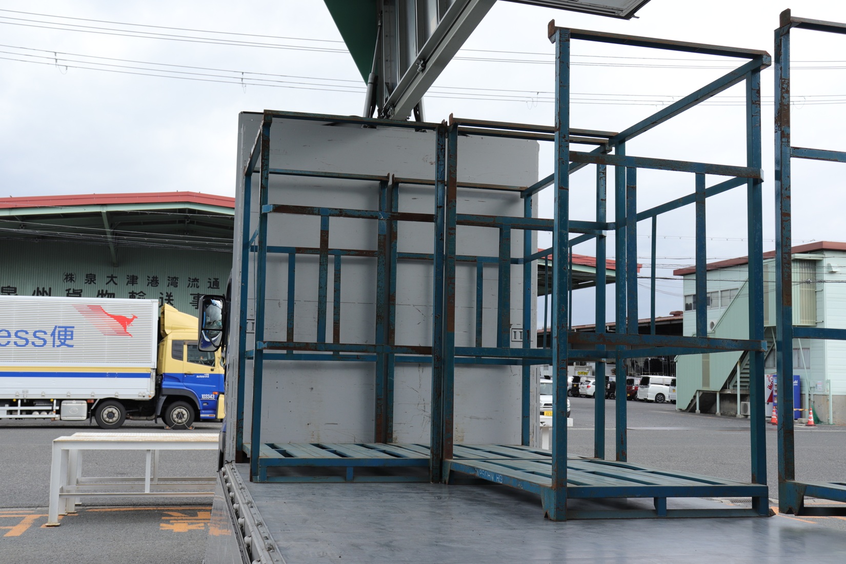〇トラック輸送も考慮したサイズで、商品を積んだまま輸送可能(奥行1,100mm、高さストッパー含め約2,200mm)