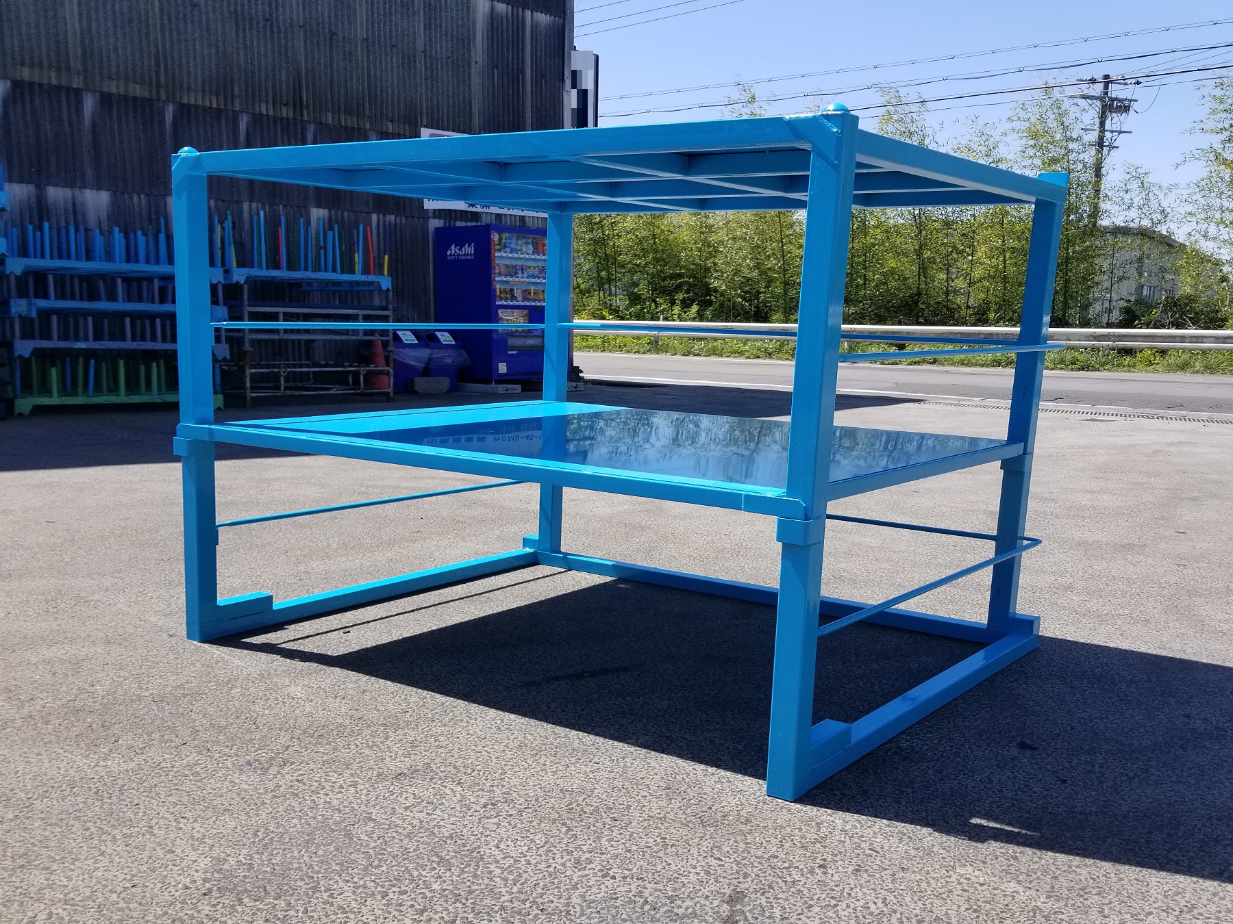 【新品】逆ネステナー外寸:W1,550×D1,200×H1,400mm内寸:W1,450×D1,150×H1,350mmお客様のご要望で安全対策として、天面・中間棚に鉄板を張り、荷崩れ防止用に両側面に着脱式・背面に固定式バーを取り付けましたまた、背の低い商品保管用に着脱式の中間棚で2分割仕様にしていますご要望のサイズで製造可能、受注生産品となります詳細につきましては、お気軽にお問い合わせください