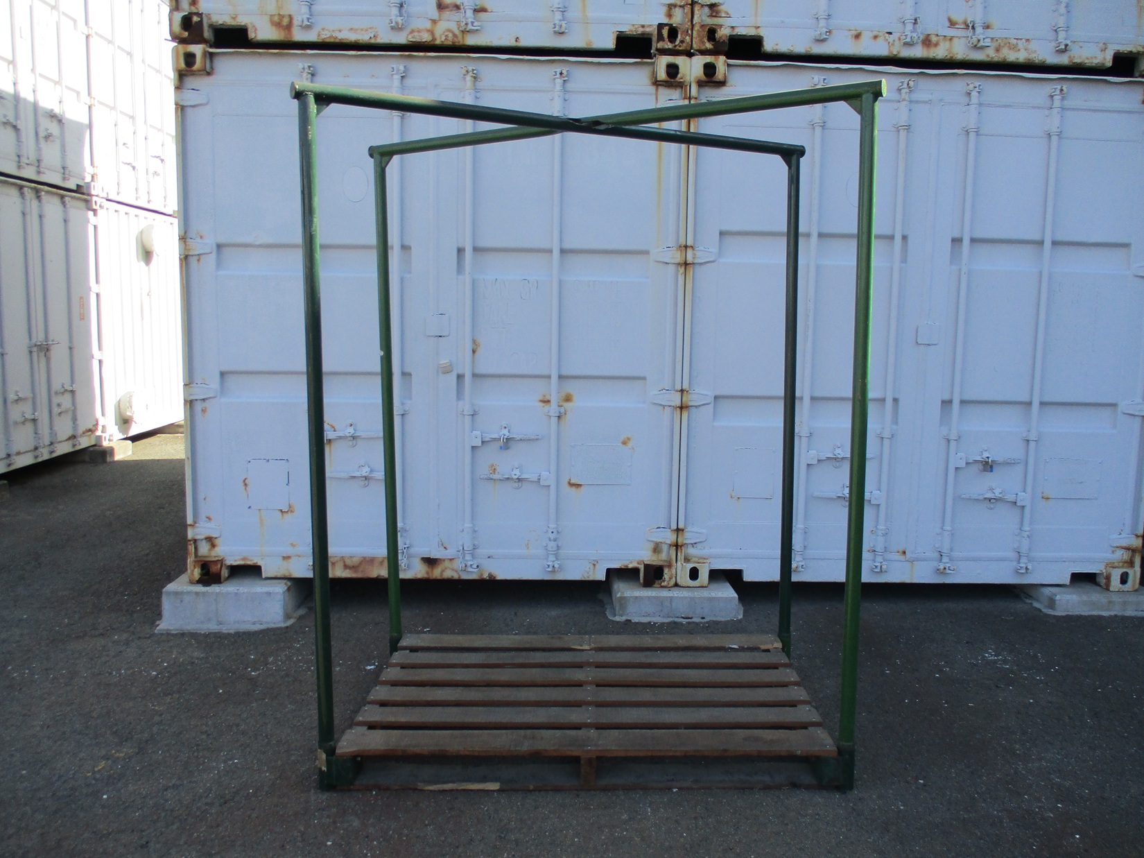 - 【中古】クロスサポーター付木製パレットセット 緑色 W1,730×D1,100×H2,160