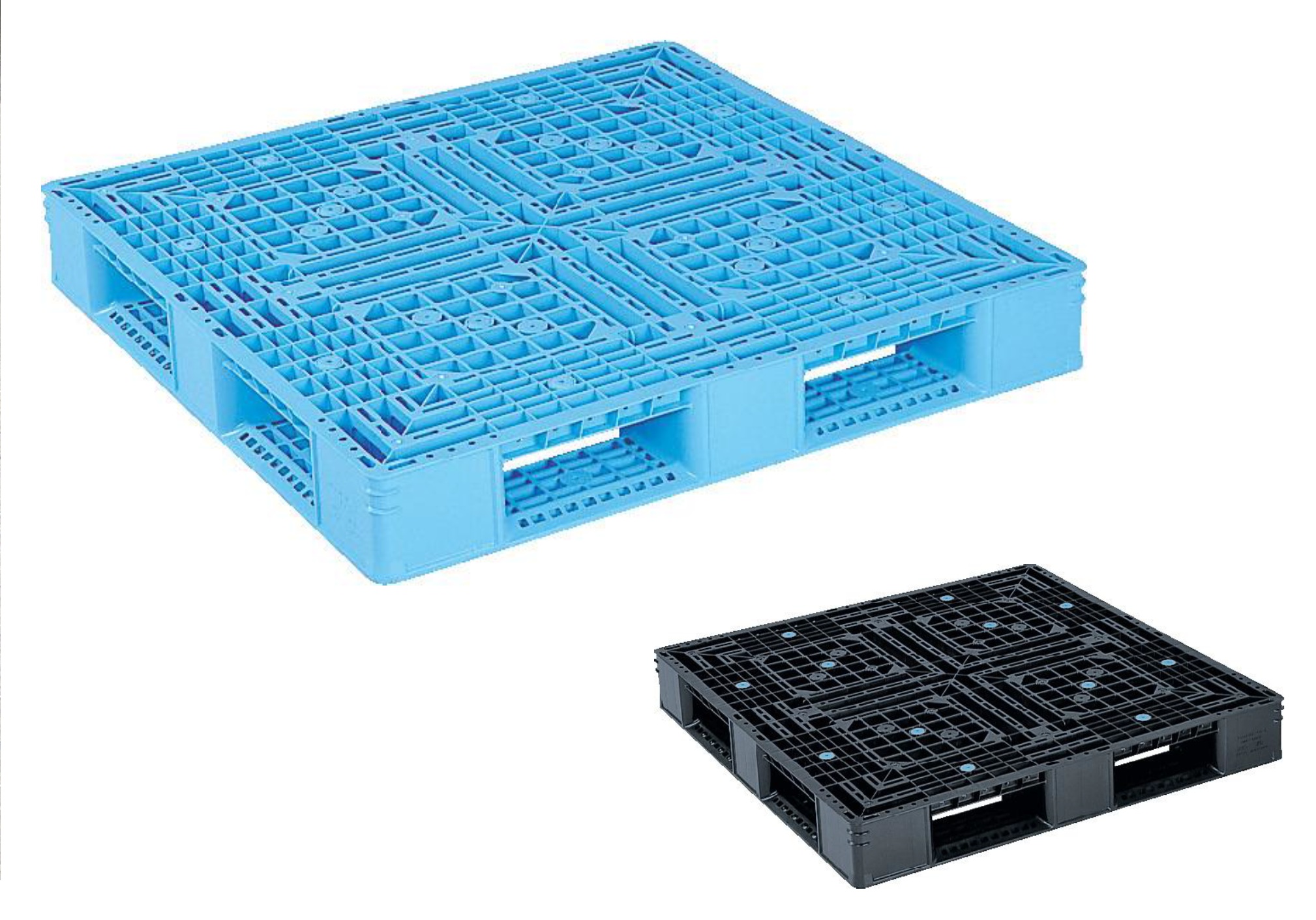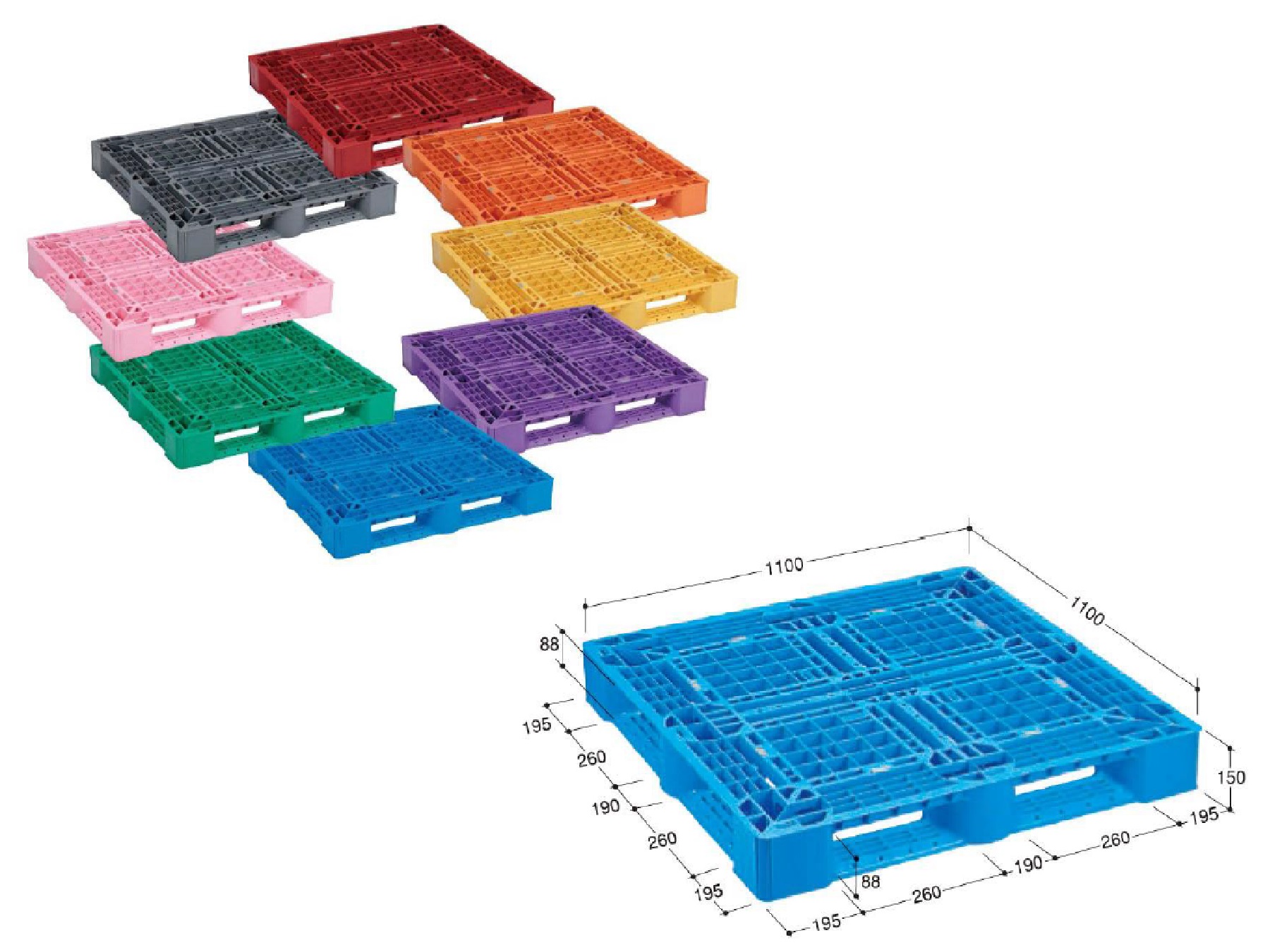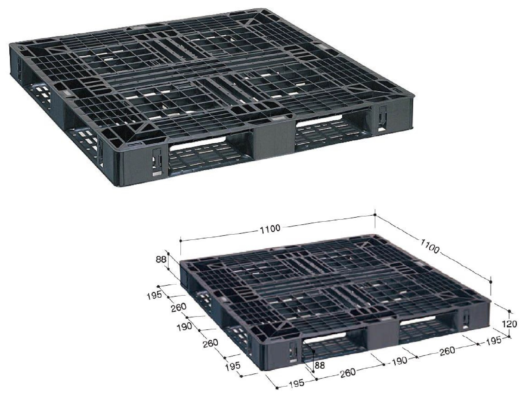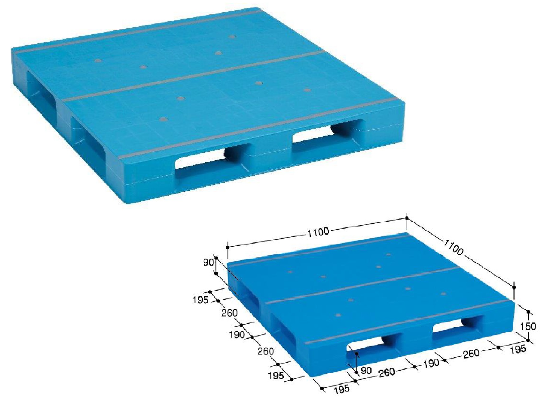 - 【新品】リサイクル樹脂パレット 1100×1100×150H 片面四方差し