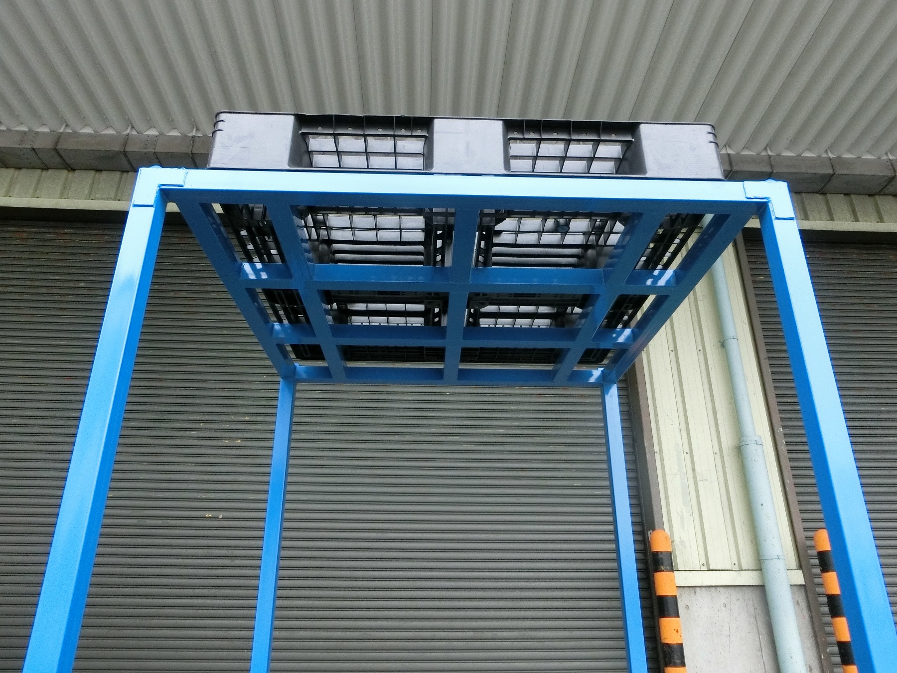 - 【新品】逆ネスティングラック 青色 上ピンタイプ W1350×D1200×H1750 樹脂パレット破損対策仕様